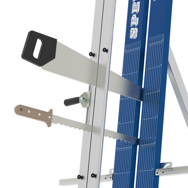 Die Sägeführung für Handsäge und Dämmstoffmesser ermöglicht präzise, gerade Schnitte bei der Bearbeitung von Dämmstoffen.