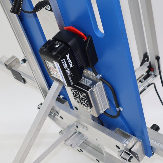 Der Akku-Adapter (CAS) ermöglicht den Einsatz von Akkus verschiedener Hersteller mit den SPEWE Glühdraht-Schneidegeräten.